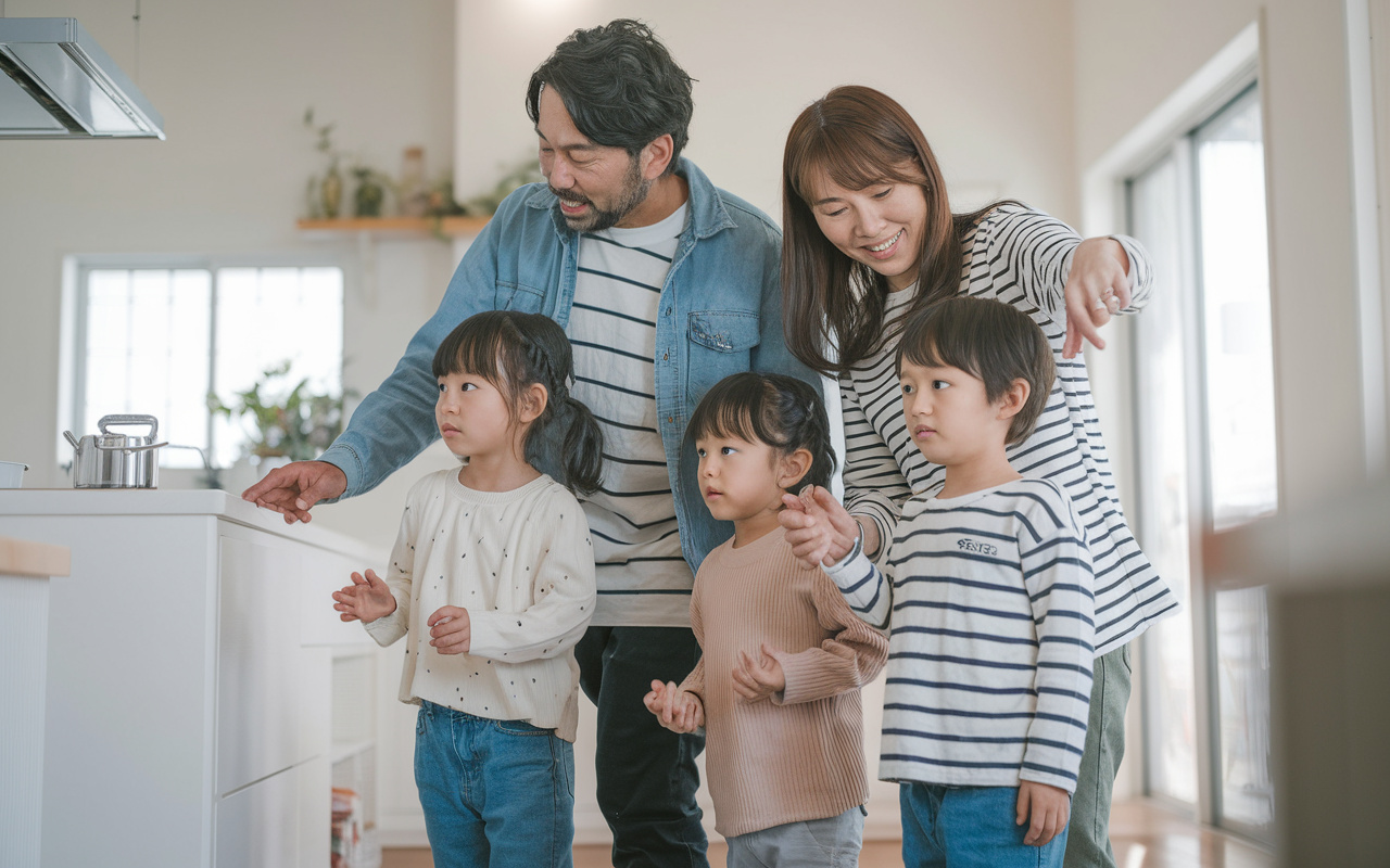 まず、お子さまの成長を身近に感じながら家事をしたいご家庭には、対面キッチンや一体型LDKが有効です。料理をしながらリビングや畳スペースで遊ぶお子さまの様子を自然と見守ることができます。また、リビング階段を採用すると、「ただいま」の声が自然に届く配置となり安心です 。